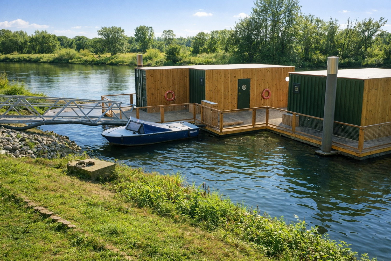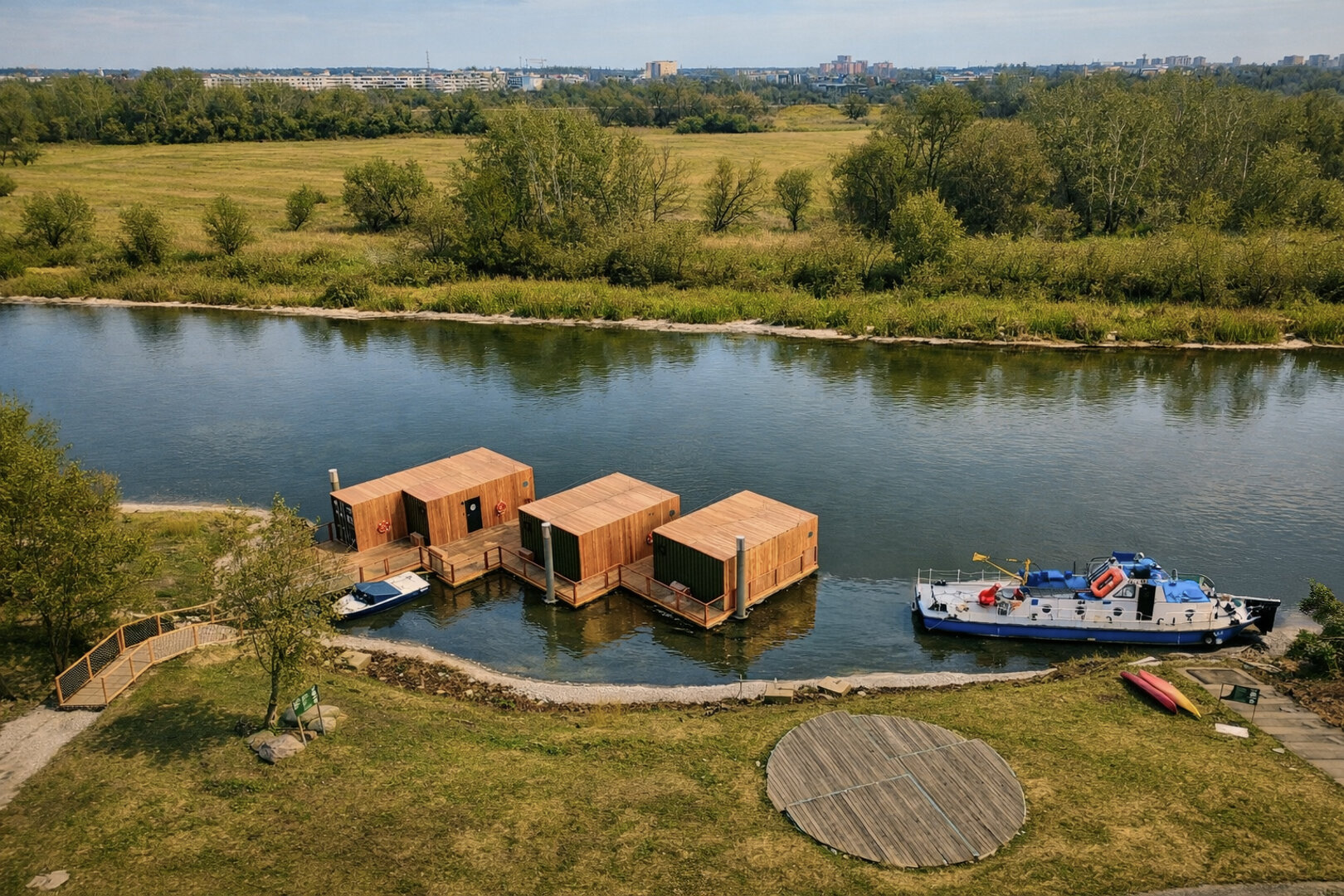 Domy na wodzie i w ogrodzie to kameralne miejsce nad rzeką Wartą, które powstało z miłości do natury, jako alternatywa dla typowych noclegów w mieście. Położone na Szelągu, w zielonej, spokojnej części Poznania, zaledwie 10 minut od Starego Rynku, łączy bliskość centrum z bezpośrednim kontaktem z przyrodą. Przestrzeń sprzyja wypoczynkowi, dłuższym pobytom i wspólnemu spędzaniu czasu, bez miejskiego zgiełku, ale z pełnym komfortem.