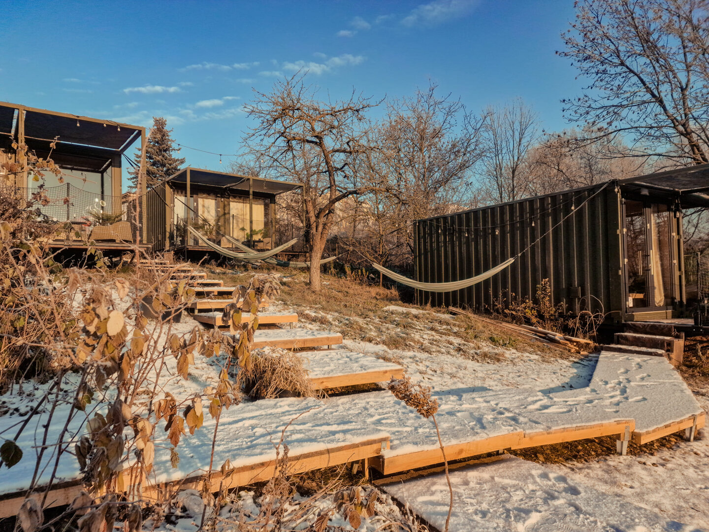 Unikalny, zielony i cichy pobyt nad rzeką Wartą, 5 minut od Starego Rynku w Poznaniu. Nowoczesne domki z tarasem wśród zieleni, klimatyzowane, z aneksem kuchennym i łazienką. Kajaki, rowery, rejsy jachtem, warsztaty rzemieślnicze, marina, ognisko, hamaki