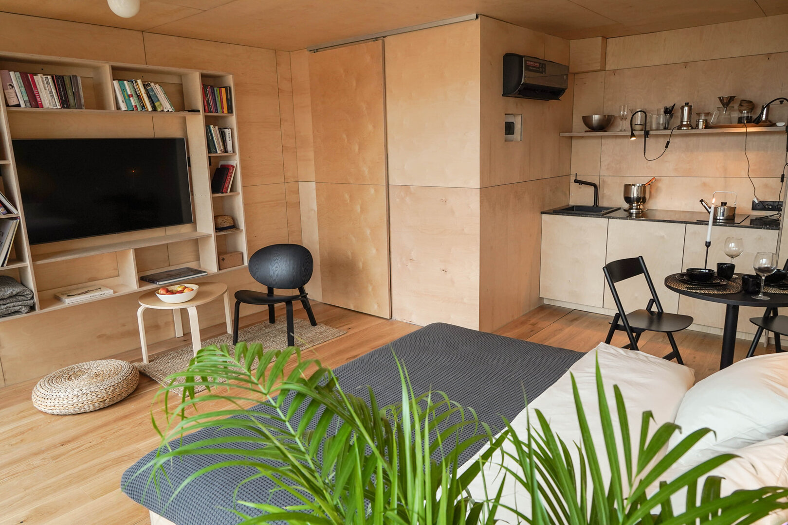 Unikalny pobyt w domu na wodzie, 10 minut od Starego Rynku w Poznaniu. Całoroczne, nowoczesne domy z tarasem, widokiem na rzekę i zieleń, zacumowane przy kameralnej marinie. Wnętrze obejmuje strefę dzienną, aneks kuchenny z płytą indukcyjną oraz łazienkę.