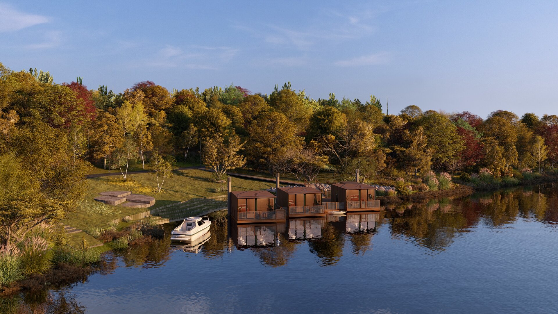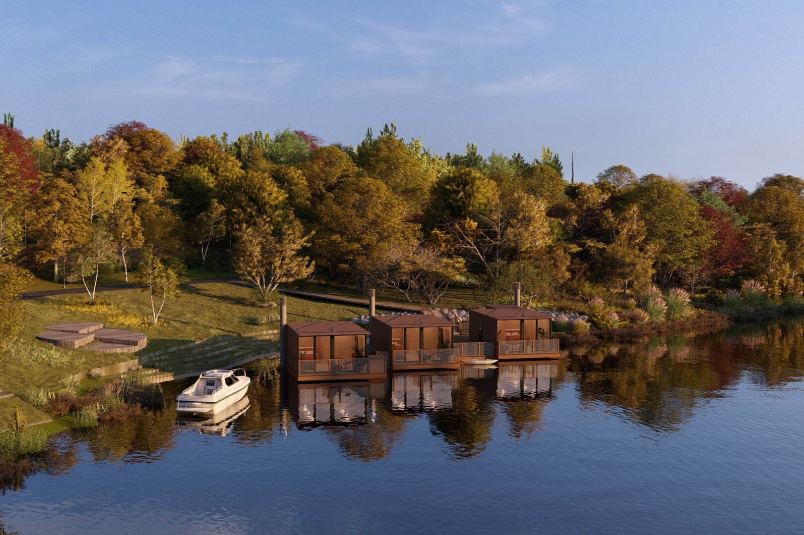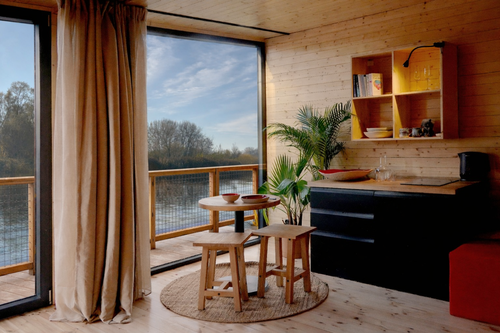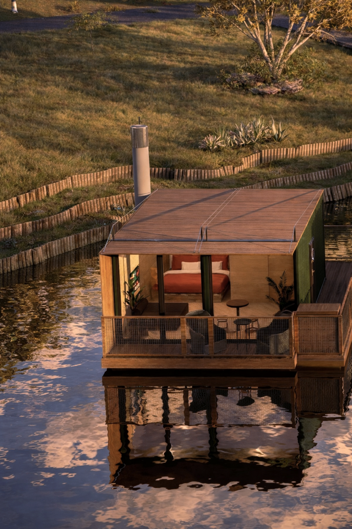 Unikalny pobyt w domu na wodzie, 10 minut od Starego Rynku w Poznaniu. Całoroczne, nowoczesne domy z tarasem, widokiem na rzekę i zieleń, zacumowane przy kameralnej marinie. Wnętrze obejmuje strefę dzienną, aneks kuchenny z płytą indukcyjną oraz łazienkę z prysznicem. Komfort przez cały rok zapewniają klimatyzacja i ogrzewanie podłogowe. Do dyspozycji gości ogród z miejscem na ognisko, kajaki, rowery, rejsy jachtem, warsztaty rzemieślnicze, hamaki, a latem bar i restauracja nad wodą. Zapraszamy
